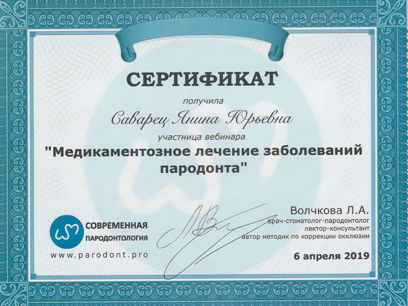 2019 - "Медикаментозное лечение заболеваний пародонта" (Лектор Волчкова Л.А.)