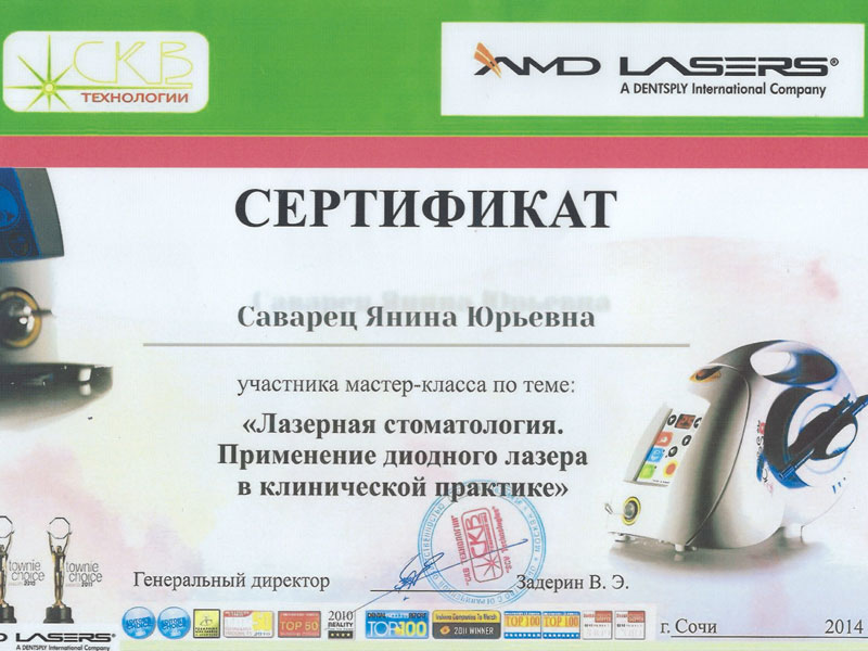 2014 - "Лазерная стоматология. Применение диодного лазера в клинической практике" AMD Lasers / DENTSPLY