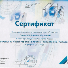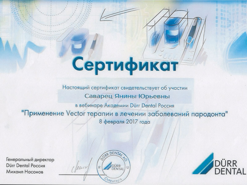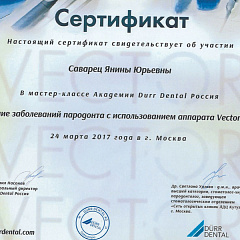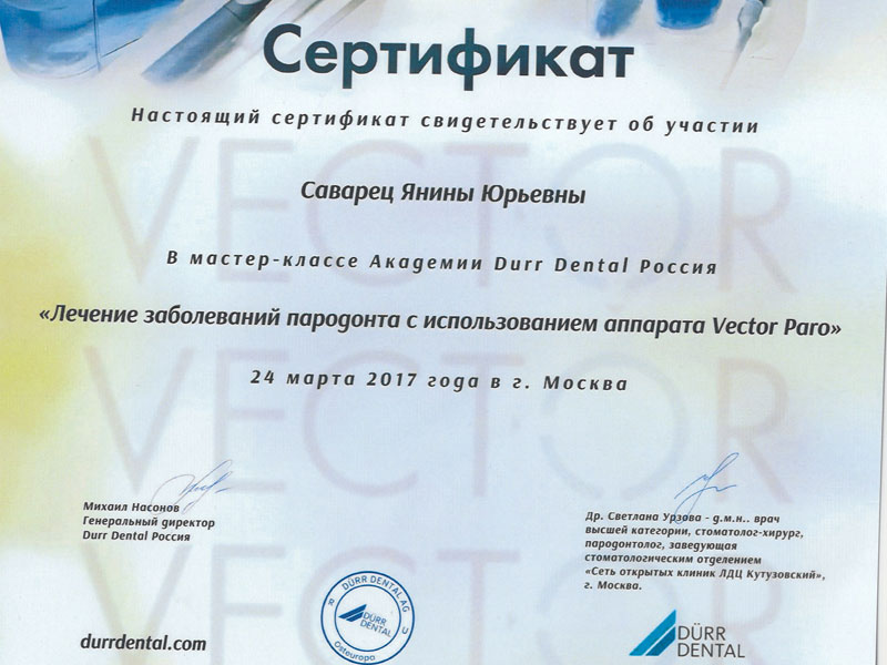 2017 - "Лечение заболеваний пародонта с использованием аппарата Vector Paro" (DURR DENTAL)