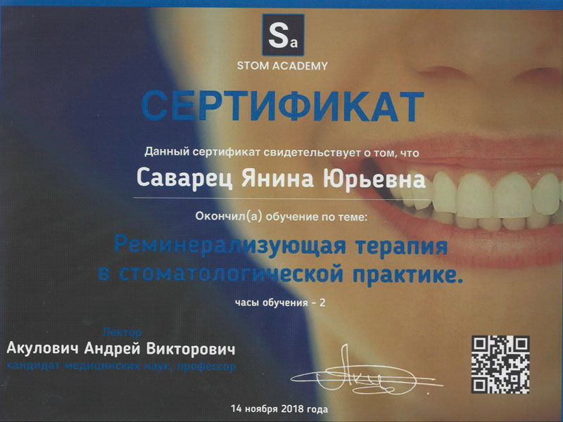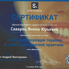 2018 - "Реминерализующая терапия в стоматологической практике" (Stom Academy)