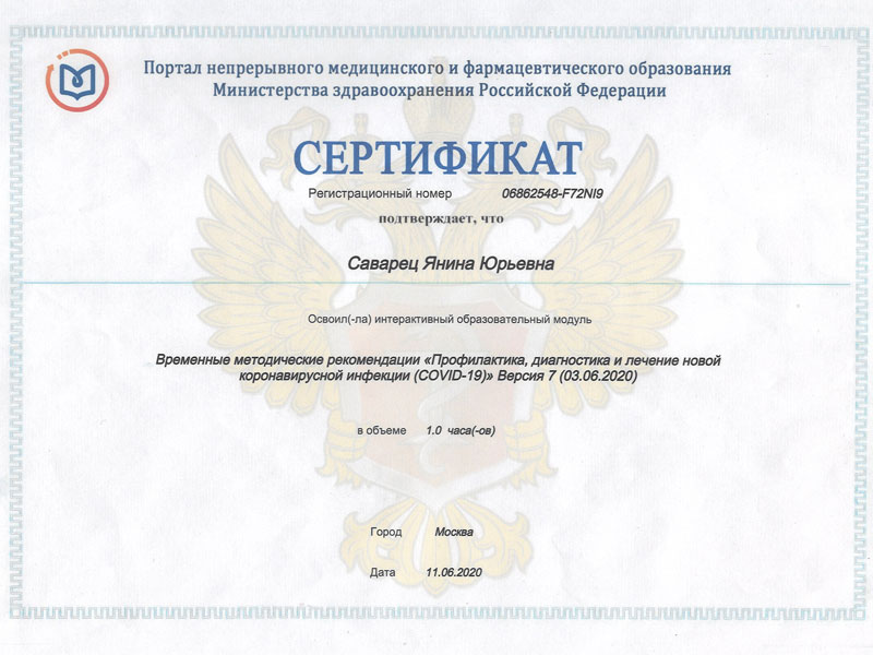 2020 - "Профилактика, диагностика и лечение новой коронавирусной инфекции"