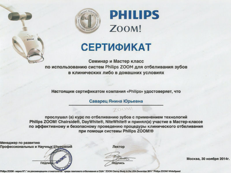 2014 - "Отбеливание зубов с применением технологии PHILIPS Zoom!"