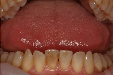 При неудовлетворительном гигиеническом уходе на зубах образуются бляшки. Начинает скапливаться налет, который со временем разрастается по всему зубу, и под действием продуктов распада и микрофлоры он минерализуется (становится твердым).