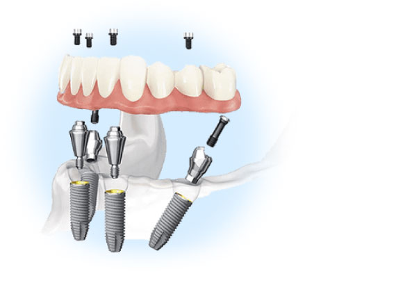 - Импланты закрепляются на специальном стержне, предварительно вживленном в кость.