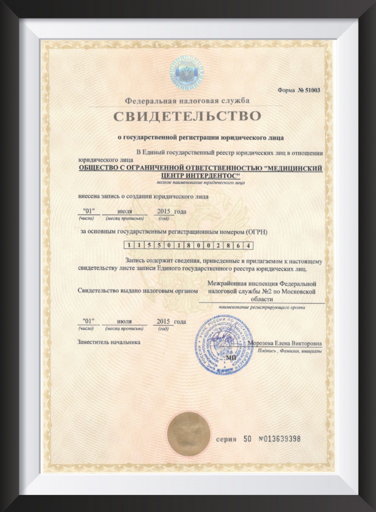 - Свидетельство о внесении записи в Единый государственный реестр юридических лиц (ЕГРЮЛ) (открыть документ)